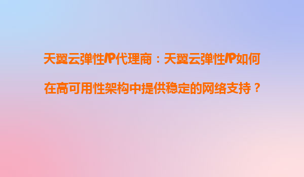 2025-08-21天翼云弹性IP代理商:天翼云弹性IP如何在高可用性架构中提供稳定的网络支持? 一、高可用性架构的挑战与需求 在现代企业数字化转型中,高可用性(HighAvailabi...