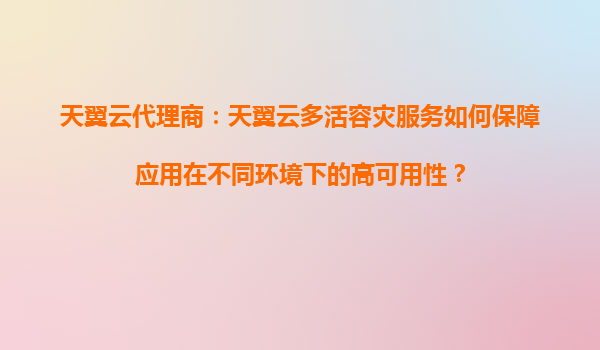 2025-08-21天翼云代理商:天翼云多活容灾服务如何保障应用在不同环境下的高可用性? 一、多活容灾服务的核心价值 天翼云多活容灾服务通过分布式架构设计,将业务系统部署在多个地...
