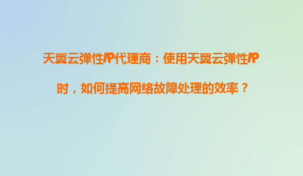 2025-08-21天翼云弹性IP代理商:如何高效处理网络故障并发挥天翼云优势 一、天翼云弹性IP的核心优势 作为中国电信旗下的云计算服务品牌,天翼云弹性IP凭借以下优势成为企业上云首选: 运...