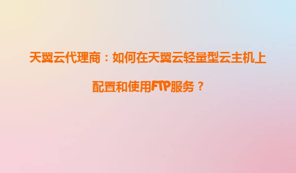 2025-10-31天翼云轻量型云主机上配置FTP服务的完整指南 天翼云轻量型云主机的核心优势 作为国内领先的云计算服务商,天翼云轻量型云主机凭借高性能SSD存储、弹性带宽配置和智能运维系统,为用户提供即开即用的计算资源。...