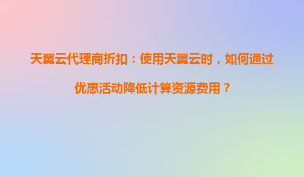 2025-08-20天翼云代理商折扣:优化计算资源成本的实用指南 一、天翼云的核心优势助力成本优化 作为中国电信旗下的云计算品牌,天翼云凭借央企背景和强大的基础设施资源,为用户提供高性价比的计算服务。其全国覆...