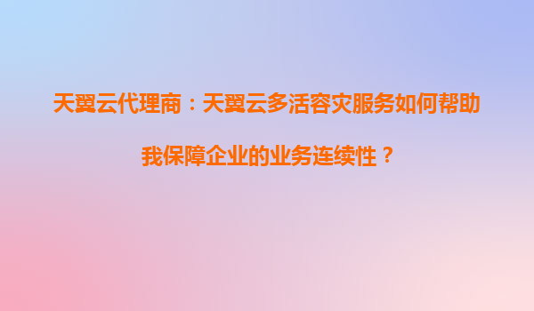 2025-08-20天翼云代理商视角:多活容灾服务如何实现数据高可用性 作为天翼云的核心合作伙伴,代理商在向企业客户推荐多活容灾解决方案时,需要深入理解其技术优势与落地价值。本文将从实际应用场景出发,剖析天翼云多活容灾服...