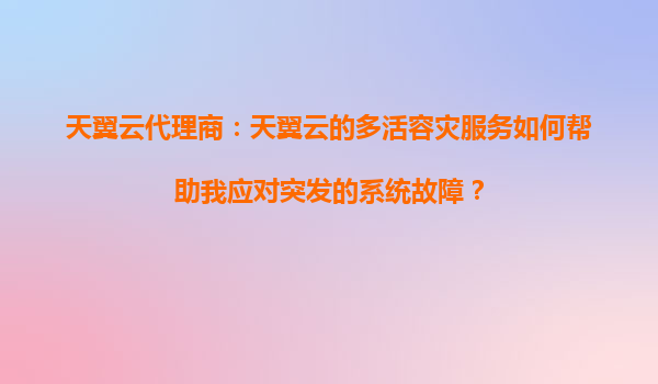 天翼云代理商:天翼云的多活容灾服务如何应对突发系统故障? 一、多活容灾服务的核心价值 在数字化时代,业务连续性是企业生存的关键。天翼云通过多活容灾服务,为用户提供跨地域的实时数据同步与业务...
