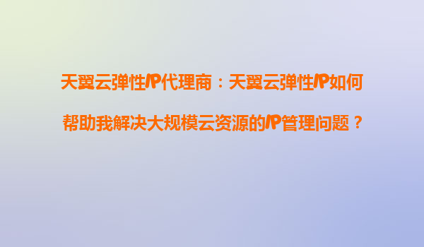 2025-08-19天翼云弹性IP代理商:天翼云弹性IP如何解决大规模云资源IP管理问题 引言:云时代下的IP管理挑战 随着企业数字化转型加速,云计算资源规模不断扩大,传统的静态IP分配方式已无法满足动态化、高并发...