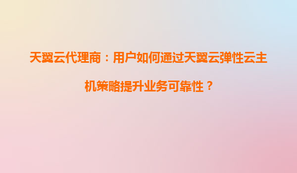 2025-08-19天翼云代理商指南:如何通过弹性云主机策略提升业务可靠性 引言 在数字化转型的浪潮下,企业上云已成为保障业务连续性和可靠性的关键选择。作为中国电信旗下的...