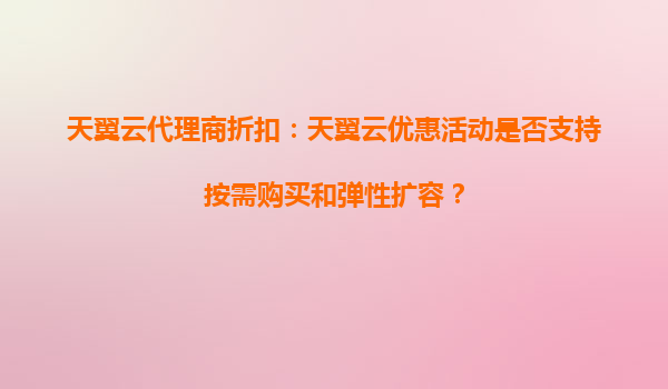 2025-08-19天翼云代理商折扣:天翼云优惠活动是否支持按需购买和弹性扩容? 一、天翼云按需购买与弹性扩容的核心优势 作为中国电信旗下的云计算服务品牌,天翼云凭借运营商级资源和技术积累,为企业提...