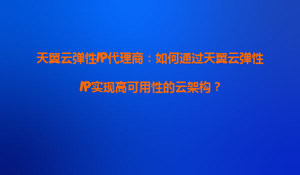 2025-08-19天翼云弹性IP代理商:如何通过天翼云弹性IP实现高可用性的云架构? 引言 在当今云计算时代,企业对于高可用性和灵活性的需求日益增长。天翼云作为中国电信旗下...