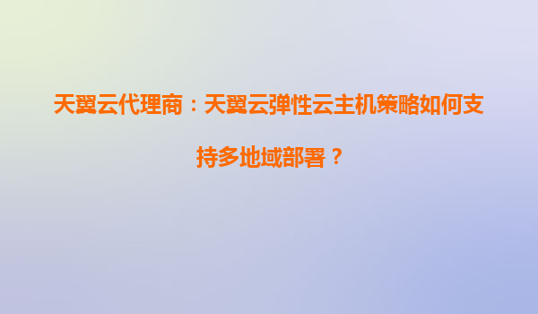 2025-08-19天翼云代理商:天翼云弹性云主机策略如何支持多地域部署? 1.引言:数字化转型中的云资源需求 在数字化转型浪潮下,企业业务往往需要覆盖全国甚至全球市场,传统的本地化IT部署模式难以满足灵活性、扩展性...