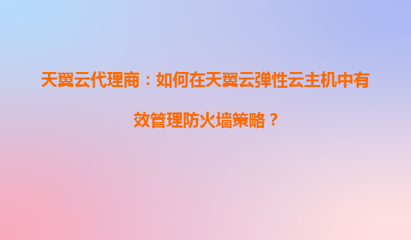 2025-08-19天翼云代理商指南:如何在天翼云弹性云主机中有效管理防火墙策略 一、天翼云的差异化优势 作为中国电信旗下的云计算服务品牌,天翼云凭借以下核心优势成为企业...