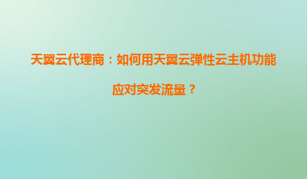 天翼云代理商:如何用天翼云弹性云主机功能应对突发流量? 一、引言:为何选择天翼云应对突发流量? 在数字化时代,企业可能因营销活动、节日促销或突发事件面临流量激增的挑战。传统服务器常因固定配置导...