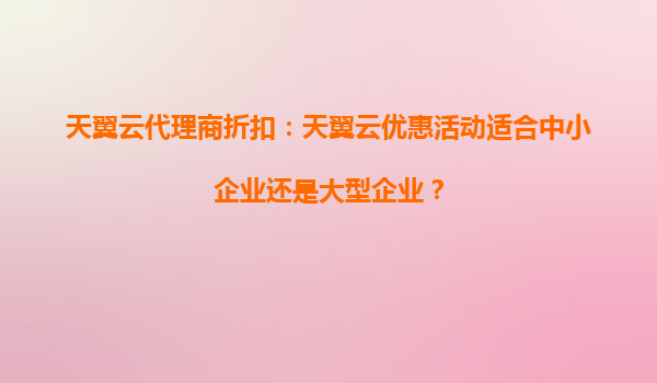 2025-08-19天翼云代理商折扣:中小企业与大型企业的上云优选 引言:云计算时代的企业需求 在数字化转型浪潮中,无论是中小企业还是大型企业,都面临着基础设施升级、成本控制和灵活扩展的挑战。天翼云凭借其央企背景和...