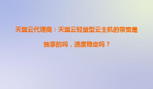 2025-10-31天翼云代理商解读:天翼云轻量型云主机的带宽是否独享?速度稳定性如何? 一、天翼云轻量型云主机的带宽特性 天翼云轻量型云主机作为面向中小企业和开发者的高性价比产品,其网络带宽是...