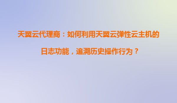 2025-10-31天翼云代理商:如何利用天翼云弹性云主机的日志功能,追溯历史操作行为? 一、天翼云弹性云主机的日志功能概述 天翼云弹性云主机作为企业级云计算服务的重要组件,提供...