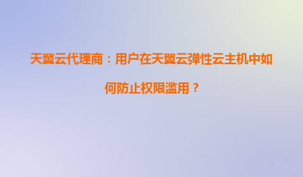2025-08-18天翼云代理商:用户在天翼云弹性云主机中如何防止权限滥用? 一、引言 随着云计算技术的快速发展,越来越多的企业选择将业务迁移到云端。天翼云作为中国电信旗下的云计算服务提供商,凭借其强大的基础设施...