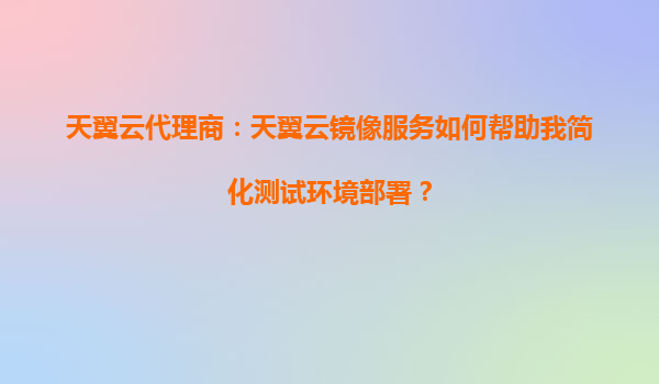 2025-08-18天翼云镜像服务:简化测试环境部署的智能之选 一、测试环境部署的痛点与挑战 在软件开发与运维过程中,测试环境的部署往往面临诸多挑战: 环境配置复杂:依赖项多,手动配置易出错 资...