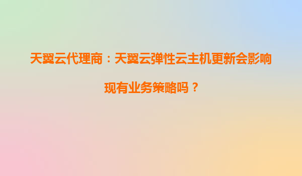 2025-08-18天翼云代理商:天翼云弹性云主机更新会影响现有业务策略吗? 一、天翼云弹性云主机的核心优势 天翼云作为中国电信旗下的云计算服务品牌,凭借其强大的基础设施和丰富的行业经验,为企业用户提供了高性能、...