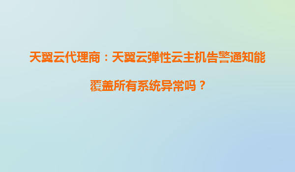 2025-08-18天翼云代理商:天翼云弹性云主机告警通知能覆盖所有系统异常吗? 一、天翼云弹性云主机的核心优势 作为中国电信旗下的云计算服务品牌,天翼云凭借其强大的基础设施和专业技术能力,为企业用户提供了高性能、高...