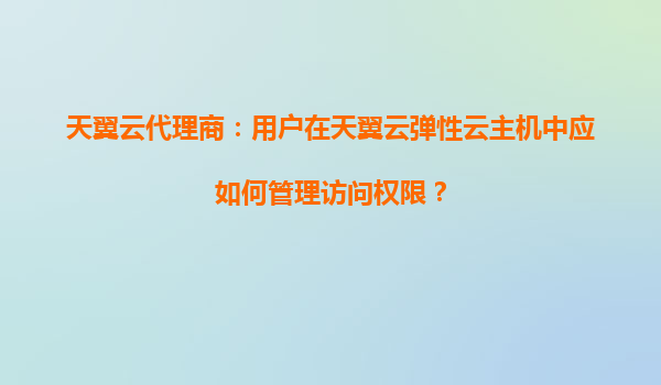 2025-08-18天翼云代理商:用户在天翼云弹性云主机中应如何管理访问权限? 一、天翼云弹性云主机的核心优势 天翼云作为中国电信旗下的云计算服务品牌,凭借其强大的基础设施和安全性,为用户提供高性能、高可...