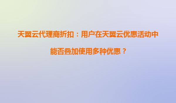 2025-08-17天翼云代理商折扣政策解析:多重优惠叠加使用指南 天翼云多重优惠叠加规则 在天翼云的优惠活动中,用户通常可以享受代理商折扣与其他促销活动的叠加优惠。具体规则需根据当期活动条款确定,但多数情况下,...