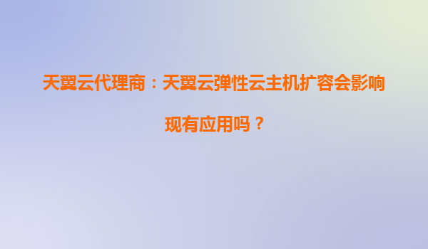 2025-08-18天翼云代理商:天翼云弹性云主机扩容会影响现有应用吗? 一、弹性云主机扩容的核心优势 天翼云作为中国电信旗下的云计算服务品牌,其弹性云主机(ECS)以高可靠性、灵活扩展性和安全合规性著称。扩容操...