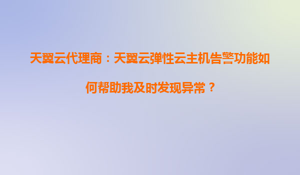 2025-08-17天翼云弹性云主机告警功能:代理商视角下的异常监测利器 一、告警功能的本质价值 天翼云弹性云主机(ECS)的告警功能是其智能运维体系的核心组件,通过实时监控资源指标和...