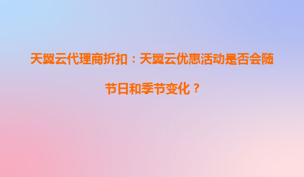 2025-08-17天翼云代理商折扣:天翼云优惠活动是否会随节日和季节变化? 一、天翼云的优势与市场定位 天翼云作为中国电信旗下的云计算服务品牌,依托电信强大的基础设施和网络资源,具备以下核心优势: 网络稳...
