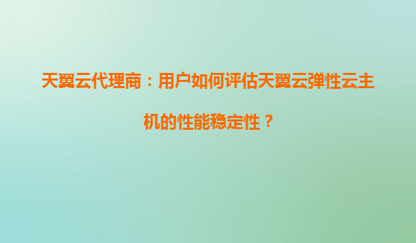 天翼云代理商:用户如何评估天翼云弹性云主机的性能稳定性? 一、引言 随着企业数字化转型加速,云计算成为支撑业务发展的核心基础设施。天翼云作为中国电信旗...