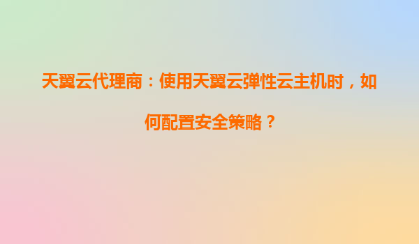2025-08-17天翼云代理商:使用天翼云弹性云主机时,如何配置安全策略? 一、天翼云弹性云主机的安全优势 天翼云作为中国电信旗下的云计算服务提供商,凭借其强大的基础设施和安全性设计,为企业和个人用户提供了...