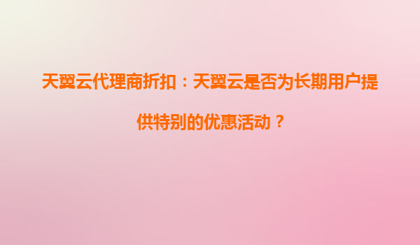 2025-08-17天翼云代理商折扣:天翼云是否为长期用户提供特别的优惠活动? 一、天翼云的长期用户优惠政策 作为中国电信旗下的云计算服务品牌,天翼云凭借其强大的基础设施...
