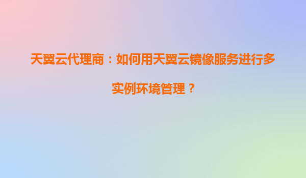 2025-08-16天翼云代理商:如何利用天翼云镜像服务进行多实例环境管理 一、天翼云镜像服务的核心优势 天翼云镜像服务(ImageService)作为云计算基础设施的重要组成部分,为企业级用户和代理商提供了高效、安全的系统环...