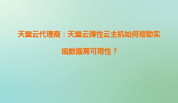 2025-08-16天翼云代理商:天翼云弹性云主机如何帮助实现数据高可用性? 引言 在当今数字化时代,企业对数据的高可用性和业务连续性提出了更高要求。天翼云作为国内领先的云计算服务提供商,其弹性云主机(EC...