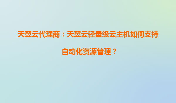 2025-08-16天翼云代理商解析:天翼云轻量级云主机如何支持自动化资源管理 一、天翼云轻量级云主机的核心优势 天翼云作为中国电信旗下的云计算服务品牌,其轻量级云主机产品凭借以下优势成为企业数字化转型的理想选择...