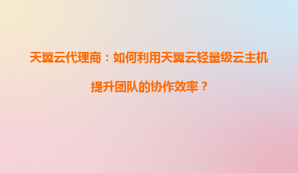 2025-08-16天翼云代理商:如何利用天翼云轻量级云主机提升团队的协作效率? 一、天翼云轻量级云主机的核心优势 作为天翼云代理商,首先需要充分理解天翼云轻量级云主机的技术特点及其在团队协作场景中的独特价值: ...