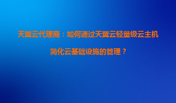 2025-08-15天翼云代理商:如何通过天翼云轻量级云主机简化云基础设施的管理? 引言 在数字化转型的浪潮中,企业对于云服务的需求日益增长。云主机作为云基础设施的核心组...