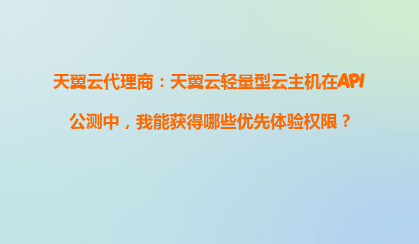2025-10-31天翼云代理商:天翼云轻量型云主机在API公测中,我能获得哪些优先体验权限? 一、天翼云轻量型云主机的核心优势 天翼云作为中国电信旗下的云服务品牌,始终以安全可靠、高效稳定为核心优势,轻量型云主机更...