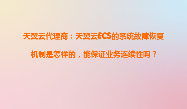 2025-10-31天翼云代理商:天翼云ECS的系统故障恢复机制解析与业务连续性保障 一、天翼云ECS的故障恢复机制设计 天翼云作为中国电信旗下云服务品牌,其ECS(弹性计算服务)采用多层次容灾架构保障系统稳定性: 硬件级冗余设...