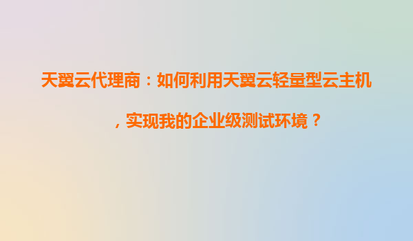 2025-10-31天翼云代理商:如何利用天翼云轻量型云主机实现企业级测试环境 一、引言 随着云计算技术的快速发展,越来越多的企业开始将测试环境迁移至云端,以提升开发效率和降低成本。作为天翼云代理商,我们有责任帮...