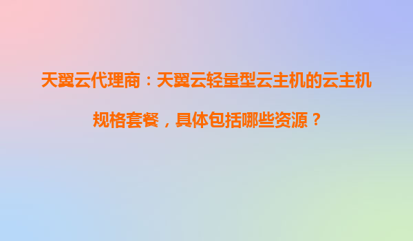 2025-10-31天翼云代理商:天翼云轻量型云主机的云主机规格套餐详解 一、天翼云轻量型云主机概述 天翼云作为中国电信旗下的云计算服务品牌,凭借其强大的央企背景和丰富的网络资源优势,为企业和个人用户提供了一系列高品...