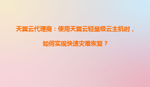 天翼云代理商指南:如何实现轻量级云主机的快速灾难恢复 一、轻量级云主机与灾难恢复的核心需求 天翼云轻量级云主机以其高性价比和简易运维优势,成为中小企业上云首选。但在日常运营中...