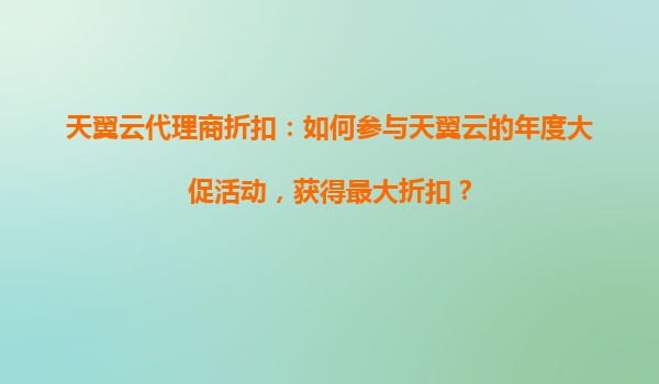 2025-08-15天翼云代理商折扣:如何参与天翼云的年度大促活动,获得最大折扣? 一、天翼云的核心优势 天翼云是中国电信旗下的云计算品牌,凭借其在通信领域的技术积累和资源优势,提供了高性能、高可靠的云服务解...