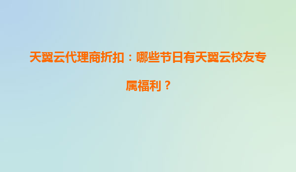 2025-08-14天翼云代理商折扣:哪些节日有天翼云校友专属福利? 一、天翼云的核心优势与校友专属福利 天翼云作为中国电信旗下云计算服务品牌,凭借其强大的资源整合能力、稳定高效的云服务以及完善的安全保障...