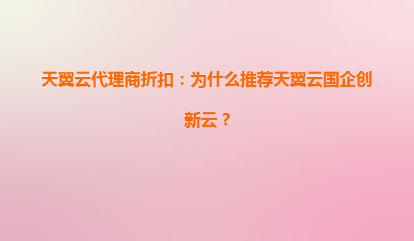2025-08-14天翼云代理商折扣:为什么推荐天翼云国企创新云? 一、天翼云代理商折扣的核心优势 作为中国电信旗下云计算品牌,天翼云通过代理商体系为企业用户提供高性价比服务: 阶梯式折扣政策:采购规模越大,通...