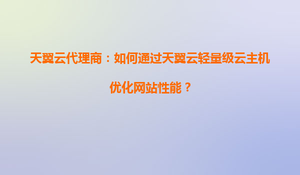 2025-08-14天翼云代理商:如何通过天翼云轻量级云主机优化网站性能? 引言:轻量级云主机与网站性能的关联 在数字化时代,网站性能直接影响用户体验和业务转化率。天翼云...