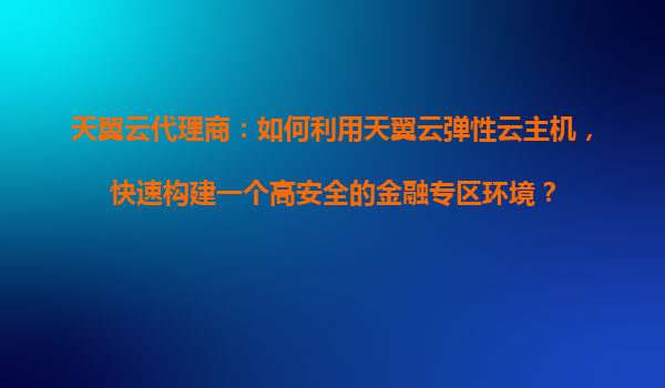 2025-10-31天翼云代理商:如何利用天翼云弹性云主机,快速构建高安全金融专区环境 引言 在数字化转型浪潮中,金融行业对数据安全、系统稳定性和合规性的要求日益严苛。天翼云作为中国电信旗下的云...