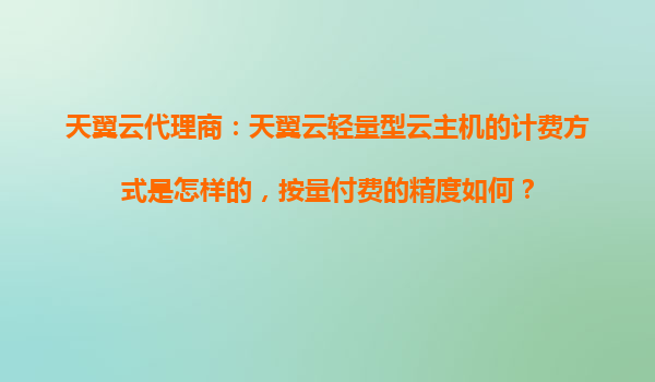 2025-10-31天翼云代理商解析:轻量型云主机计费方式与按量付费精度详解 一、天翼云轻量型云主机计费模式 天翼云轻量型云主机作为面向中小企业和开发者的普惠型云计算服务,提供灵活弹性的计费方案...