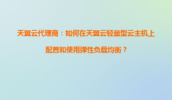 2025-10-31天翼云代理商指南:如何在轻量型云主机上配置和使用弹性负载均衡 一、天翼云的核心优势 作为中国电信旗下云计算品牌,天翼云凭借以下优势成为企业上云首选: 央企级安全保障:通过国家等保三...