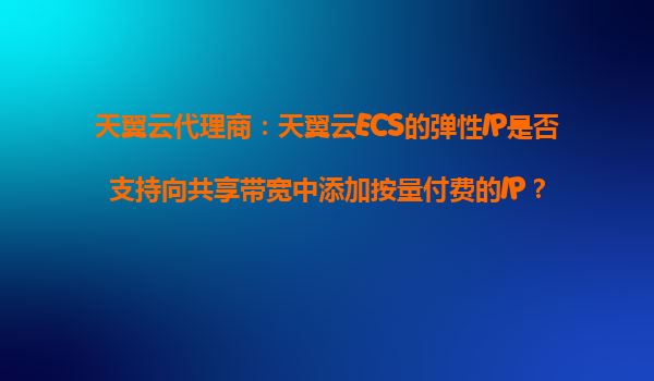 2025-10-31天翼云ECS弹性IP与共享带宽的灵活配置解析 一、天翼云弹性IP与共享带宽的核心优势 天翼云作为中国电信旗下的云计算服务商,其弹性IP和共享带宽服务在资源调配效率和成本控制方面表现突出: 双计费模...