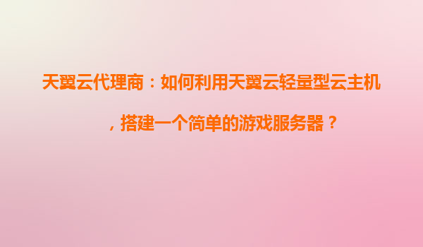 2025-10-31利用天翼云轻量型云主机搭建游戏服务器:代理商的优势与实践指南 一、天翼云轻量型云主机的核心优势 天翼云轻量型云主机(Lighthouse)是为中小企业及开发者量...