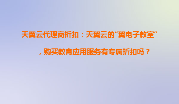天翼云代理商折扣:揭秘“翼电子教室”教育应用服务的专属优惠 引言 在当前数字化教育浪潮下,云计算技术成为教育信息化转型的核心驱动力。作为中国电信旗下的云计算品牌,天翼云凭借强大的技术实...