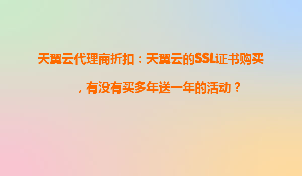 2025-10-31天翼云代理商折扣全解析:SSL证书多年购买赠送一年活动及天翼云核心优势 一、天翼云SSL证书优惠活动现状 针对用户关心的"天翼云SSL证书是否有买多年送一年活动"问题,目前官方公布的促销政策显示: 标准套餐:通...